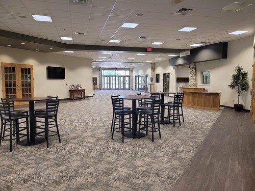 Our Foyer is a large, open gathering space that has multiple uses for an event. In most cases, it is left open to provide an open area for guests to move about and mingle.